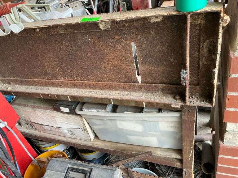 Homemade metal frame workbench (No Contents). Very heavy. Approximately 12 feet long **End of day load out & bring help!**