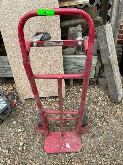 This auction includes a red hand truck or dolly. The dolly is designed with a folding feature, which is convenient for storage. Ideal for moving boxes and other heavy items.