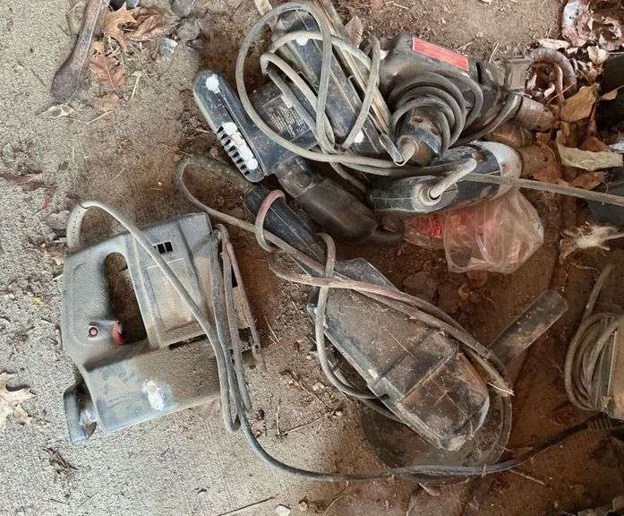 Included in this auction lot are various power tools and accessories. Appears to be a Craftsman power polisher, jig saw and possibly a few more tools that are tangled together with their cords. There are also various accessories, including buffing pads and grinding wheels.