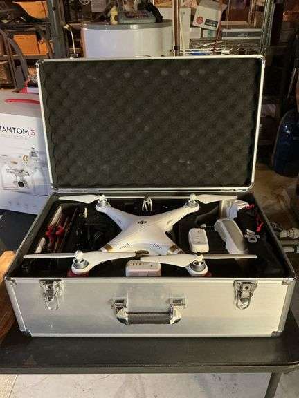 This phantom three professional drone comes in a metal carrying case and also has the original box. Owner says it is an older model and the battery life is not very long.