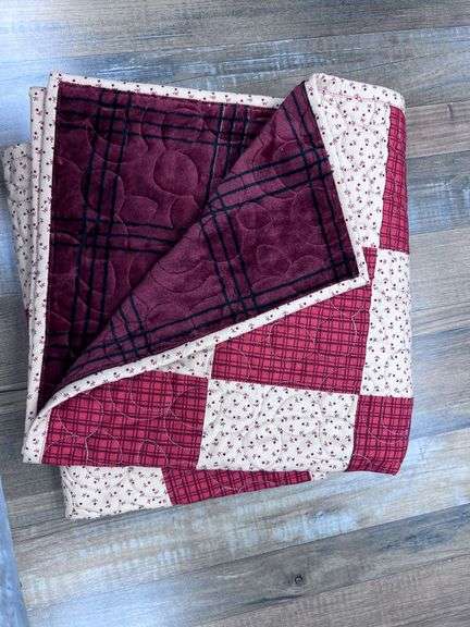 The lovingly created quilt top was made by skilled quilters of Heart Of Life and then machine quilted by Don Sutcliffe. This 38” x 55” checkerboard quilt is a beautiful blend of artistry, precision, and comfort. Machine pieced and quilted, it reflects more than five hours of careful craftsmanship and multiple quilting talents. The quilt’s top features 100% cotton fabrics in rich reddish prints of plaid and florals, while the back showcases an irresistibly soft deep red minky fabric — perfect for cozy evenings or a charming decorative accent. Equal parts warmth and workmanship, this piece is a true heirloom in the making — a timeless reminder of the beauty found in things made with care. Retail Value: $200