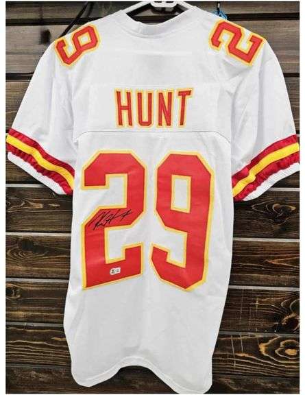 Show your Chiefs pride with this authentic Kansas City Chiefs jersey personally signed by running back #29 Kareem Hunt. Known for his explosive plays and unforgettable rookie season, Hunt quickly became a fan favorite — and this autographed jersey is a tribute to his impact on the field. Professionally authenticated and ready for display, it’s a standout collectible that celebrates the heart and energy of Chiefs football. Perfect for framing, gifting, or adding to your personal Chiefs memorabilia, this piece captures the excitement of game day and the legacy of one of Kansas City’s most electrifying players. Bold. Authentic. Unmistakably Chiefs. Retail Value: Priceless