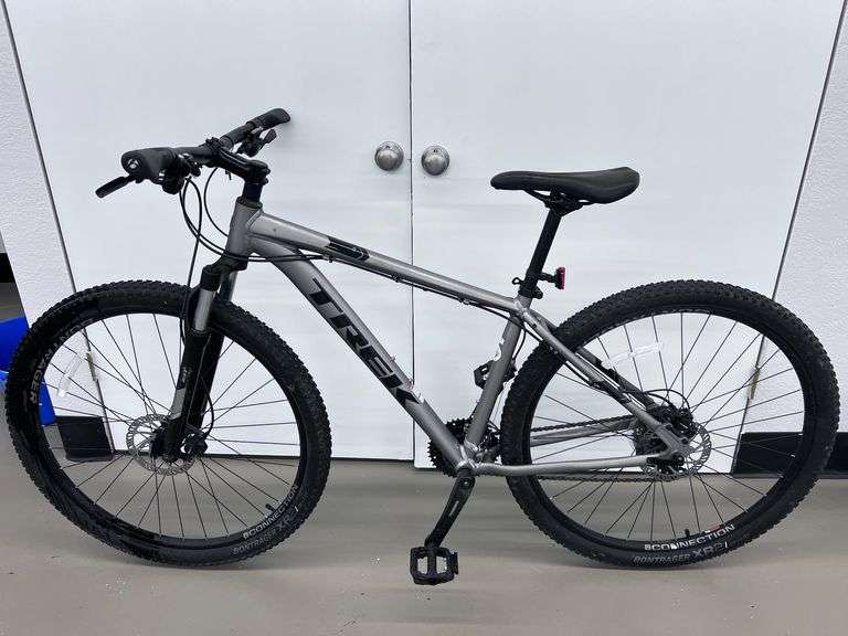 Adventure awaits with this set of two TREK aluminum mountain bikes — one men’s and one women’s model — both in excellent used condition and ready to hit the trail. The pair includes a hitch-mount bike rack, making it easy to load up and explore your next destination in style. The men’s bike features a 29” rim setup with Bontrager XR2 tires, an 18.5” silver aluminum frame, Shimano pedals, shifters, gears, Tourney derailleurs, and Shimano cassette sprockets. It’s built for durability and smooth shifting, with an RST Gila 100mm suspension front fork for confident handling on rugged terrain. The women’s bike boasts a 17” silver Alpha aluminum frame, 29” Bontrager rims, and a front SR Suntour M3030 suspension fork for comfort and stability. Outfitted with 21-speed Shimano shifting, a frame-mounted tire inflator, and is TREK’s “Skye” line, it’s designed for both performance and ease. Both bikes feature punctureless inner tubes, so you can focus on the ride — not the repairs. Whether you’re exploring backroads, wooded trails, or your neighborhood greenway, this high-quality set promises countless miles of adventure together. Includes: • (1) Men’s TREK 29” Mountain Bike (Silver, 18.5” frame) • (1) Women’s TREK 29” Mountain Bike (Silver, 17” frame) • (1) Hitch-Mount Bike Rack for securely hauling down the road. A perfect pairing for outdoor enthusiasts who value performance, craftsmanship, and time spent on the trail. 🌄 Estimated Original MSRP: Comparable Marlin/Skye models plus platform rack, originally retailed around $1,300.00 Estimated Current Retail Value is based upon current market comps of similar models in equally clean condition. Retail Value: $650