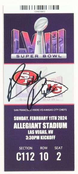 Celebrate the Chiefs’ unforgettable 2024 championship run with this Super Bowl LVIII commemorative ticket, hand-signed by Kansas City’s standout rookie receiver Rashee Rice. After the big win, Rice reflected on the moment: “We prepare for the deep moments when it gets hard. Just stick to the plan, stick to everything that we prepare for. It’s been amazing. I’m super grateful to Pat (Mahomes) — I’m blessed to play in the Super Bowl with that man.” This authenticated collectible captures both the spirit and determination that defined the Chiefs’ victory. A perfect keepsake for any true member of Chiefs Kingdom — honoring a rising star and an unforgettable season. Retail Value: $300