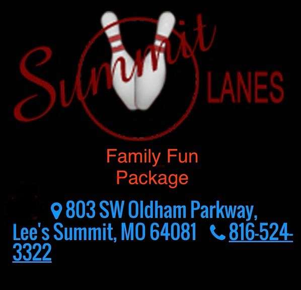 This package includes (1) lane with up to 6 people for Xtreme Friday or Saturday night/Saturday afternoon between 1-5pm. That's (2) hours of bowling with shoe rentals included. Expires December 30, 2026. Reservation is required. Summit Lanes 803 S.W. Oldham Parkway Lees Summit, MO (816)524-3322. WWW.SummitLanes.com